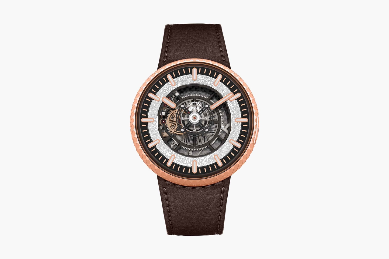 Openworked dial with a Damasteel® part fixed to the hour wheel