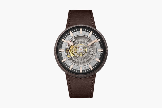 Openworked dial with a Damasteel® part fixed to the hour wheel