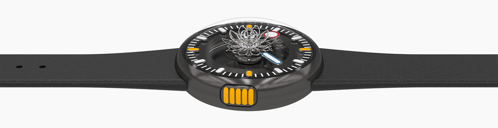 Black dial, rhodium plated hour markers with white and yellow Super-LumiNova®