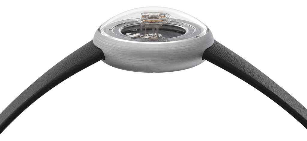The inner dial, designed with an opening at 9 o'clock, is fixed onto the main plate of the movement. Positioned beneath the floating tourbillon and the time display mechanism, this innovative dial design allows a clear view onto the gear train and sets a captivating backdrop for the tourbillon, adding depth and setting a visual stage to display the watch's meticulous engineering