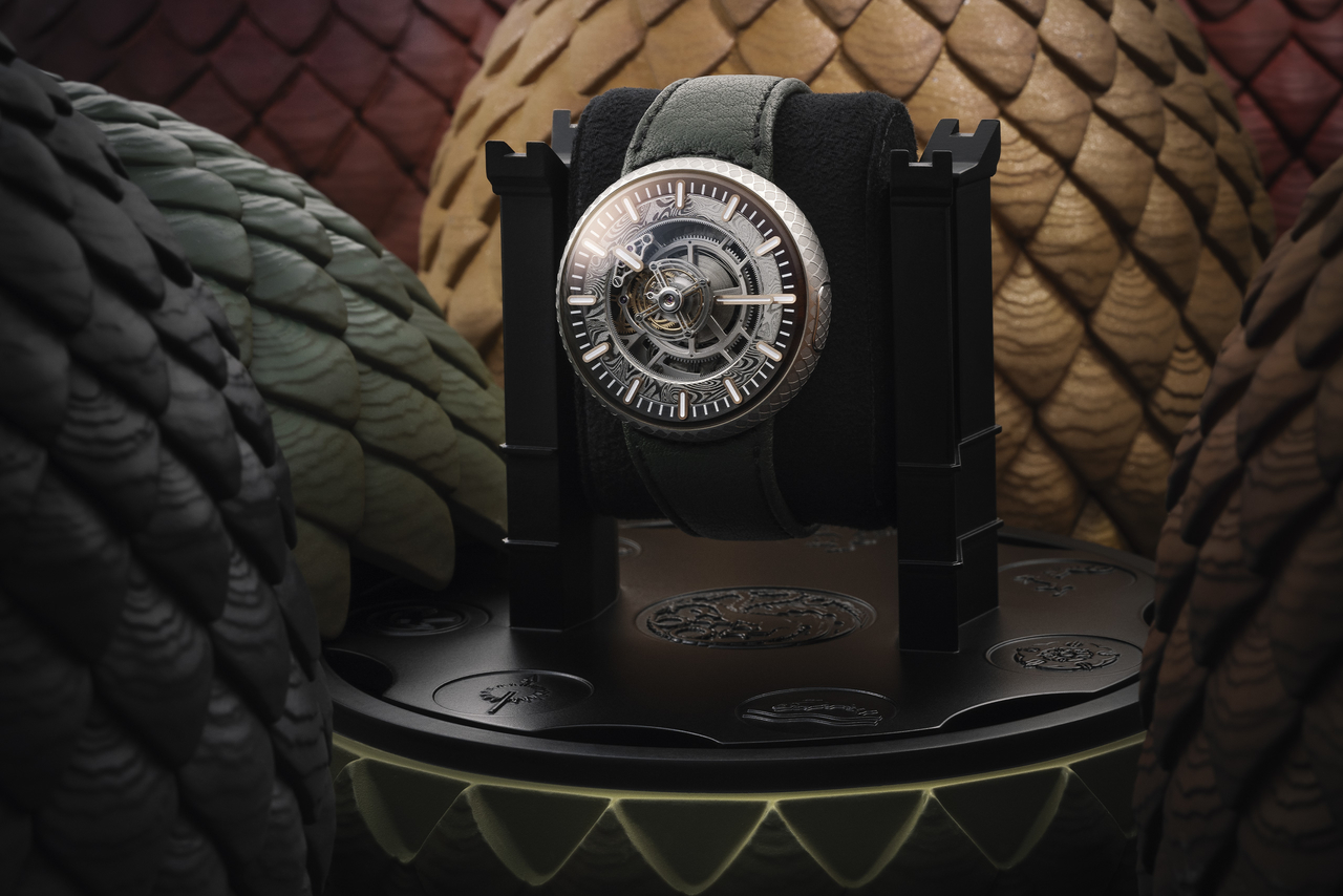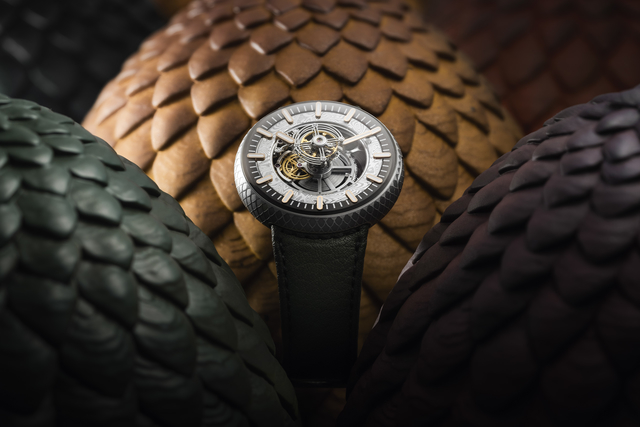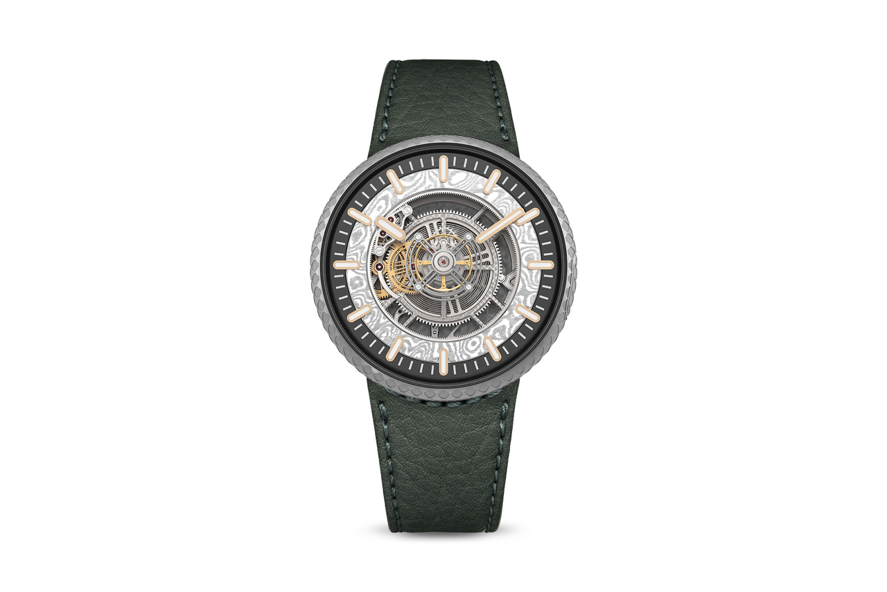 Openworked dial with a Damasteel® part fixed to the hour wheel
