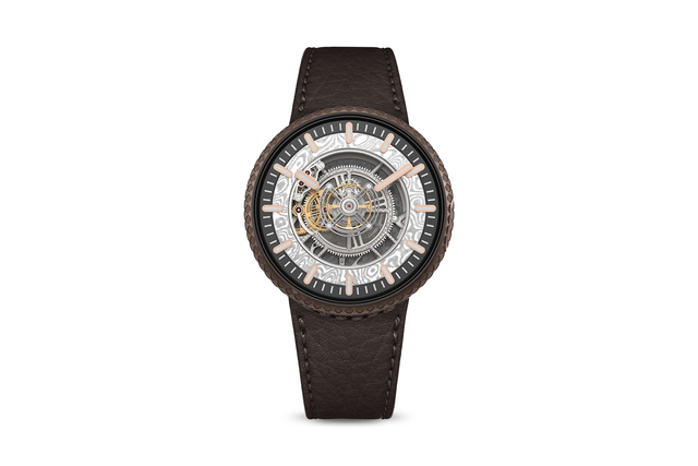 Openworked dial with a Damasteel® part fixed to the hour wheel