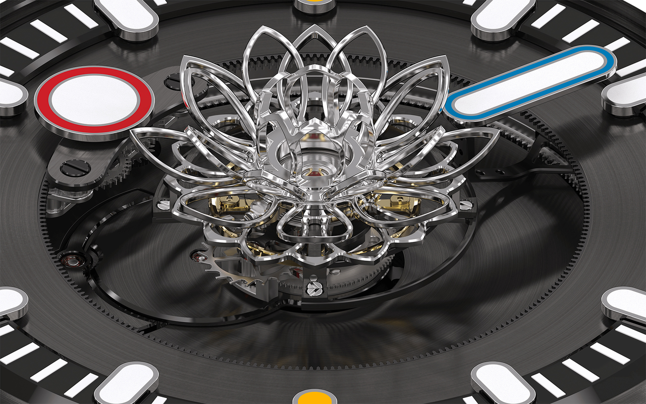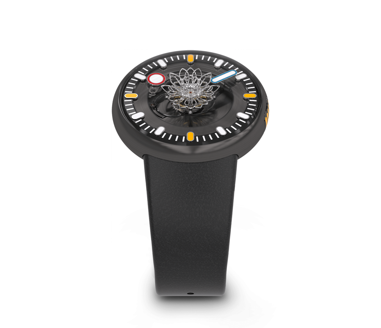 Black dial, rhodium plated hour markers with white and yellow Super-LumiNova®