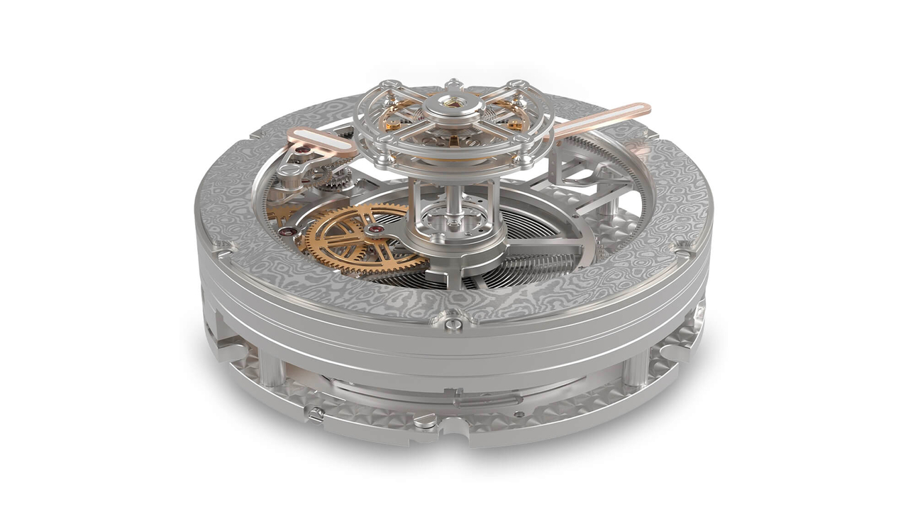 Cadran ajouré avec une pièce en Damasteel® fixée à la roue des heures